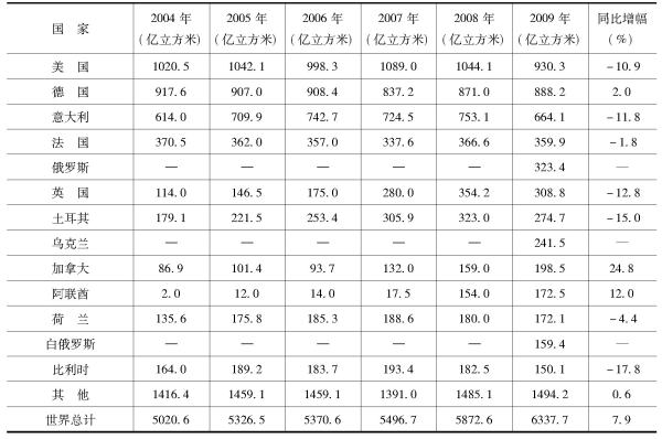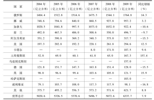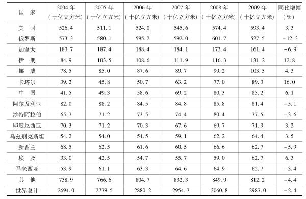 表3 2004~2009年世界天然气生产情况