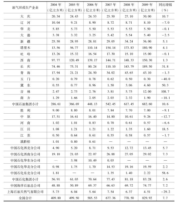 表4 2004~2009年我国天然气生产情况