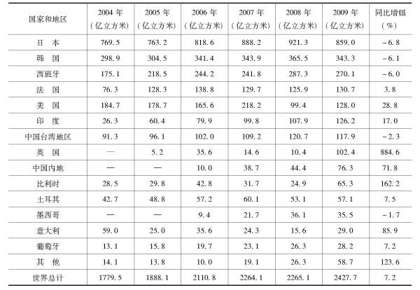 表8 2004~2009年世界管道天然气主要进口国家