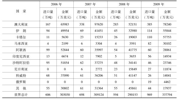 表12 2006~2009年我国石油气进口主要来源