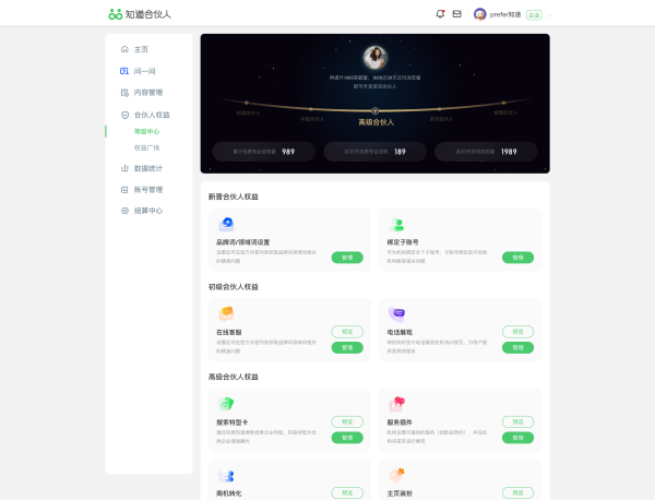 知道合伙人权益体系升级,当合伙人的问答内容量、页面浏览量达到一定标准,即可解锁不同等级的会员身份,级别越高,可享受的权益越丰富。