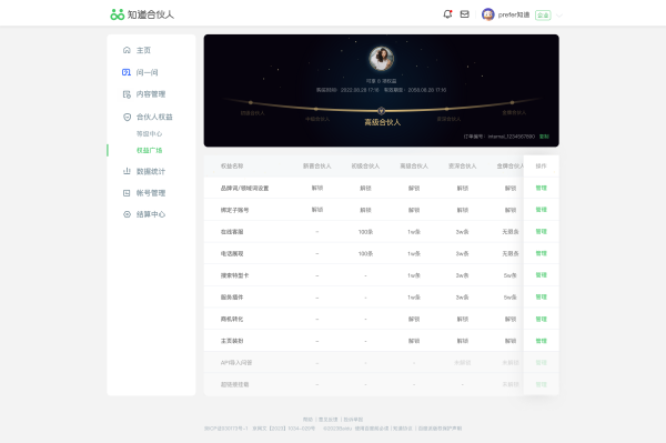 通过百度知道合伙人入口进入个人权益主页,点击「合伙人权益」-「等级中心」,即可根据需求个性化设置各项合伙人会员权益组件具体内容。