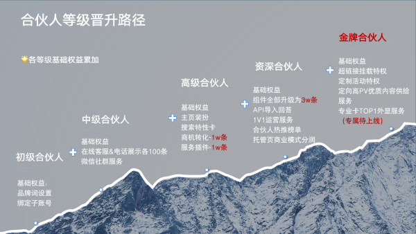 除基础权益外,还有超链接挂载特权、尾部链接直通车、定制活动特权、专业卡top1外显服务等更多金牌合伙人专属权益待上线,敬请期待。