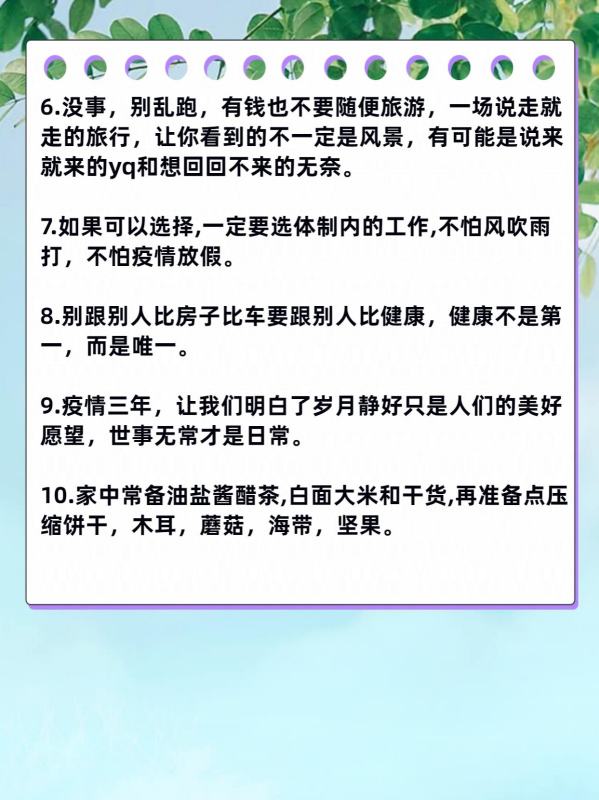 9.疫情三年,让我们明白了岁月静好只是人们的美好愿望,世事无常才是日常。
