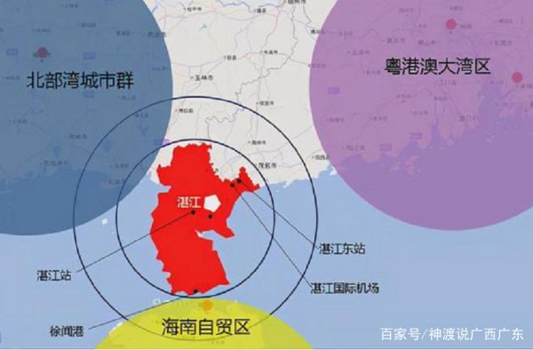 从“天时”上看,海南设立了自贸港,广东省专门为湛江市量身打造了、印发了《中共广东省委 广东省人民政府关于支持湛江加快建设省域副中心城市打造现代化沿海经济带重要发展极的意见》;从“地利”上看,湛江市已然是“粤琼桂的”的中心位置;从“人和”上看,湛江市已然是广东三大省域副中心城市之一。