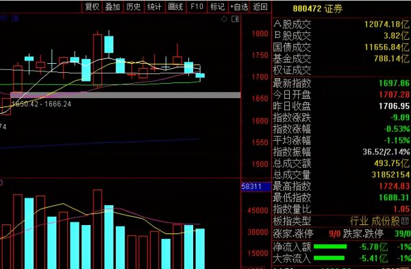 再有就是有色板块出现冲高回落,资源股的走跌成为大盘跳水的次要因素,最主要因素就是证券股跳水走跌,证券股的走跌直接导致大盘跳水,这是最主要的因素。