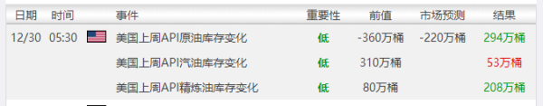 API数据前值是-360万,实际是294万,是利空原油的,不过该数据已经过了时效性。现在市场比较关注晚间EIA的原油数据。