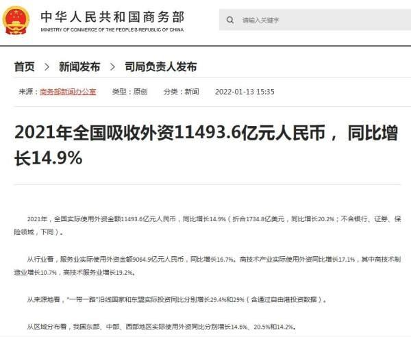 美国、德国和英国占了投资境外来源的前三名。我国东部、中部和西部实际利用外资分别增长了15.6%。25%和43.9%。中西部地区的数值要远远高于东部沿海地区随着自贸区、服务业扩大开放综合试点、国家级经济开发区等开放平台的扩大,这些地方对外资的吸引力也越来越大。而且国家为了克服疫情的不利影响,重点外资项目为提供稳定的产业链发挥了积极的作用。建立了与外国商协会常态化交流机制,开展各类交流活动44场,帮助外资企业解决实际问题。此外,还为了推进外资大项目落地,推动了一批重点项目的建设和使用。