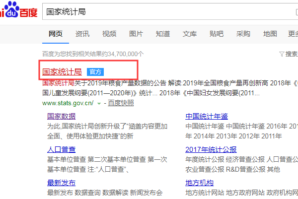 1、在百度上打开国家统计局网站,找到其官方网站以后点击打开该网站,