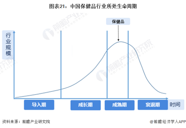 从保健品行业生命周期整体看,行业技术标准已形成,市场竞争激烈但有序,竞争焦点由产品价格转向售后服务,客户对保健品产品有较丰富的知识。同时,保健品市场规模一直处于持续增长的态势,但增长率已低于10%。由此可以判断中国保健品行业目前已买入成熟期,行业体系已较为完善和成熟,在未来的发展中,需要根据技术和市场需要的改变而进行调整。