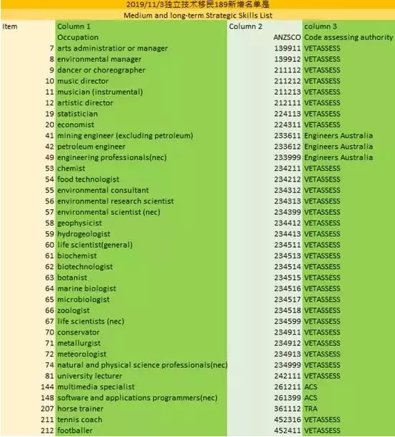 4.重大移民利好新增36个职业3月11日,澳洲最新技术移民清单出炉,共有212个职业,其中新增36个热门职业。新增的36个职业涉及艺术类、理工类、科学类、IT和其他类别,也就是说,申请人不仅可以申请毕业生临时工作签证(485签证),还可以申请独立技术移民(189签证)。
