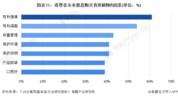 《2022植物基食品行业研究报告》中接受调查的年轻消费者购买植物肉主要考虑因素是“有益健康、有益减脂”,而植物肉所宣传的“更健康、更低脂、高蛋白”能够解决消费者核心诉求;在购买植物基食品的动机上,有益健康是消费者愿意购买植物肉的量大动因。