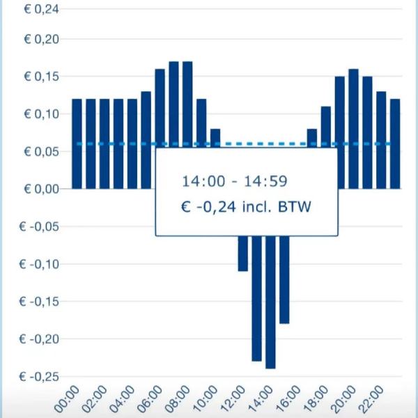 今年4月19日13时~14时,荷兰阿姆斯特丹EPEXSpotSE交易所的电价跌至-739.96欧元/兆瓦时,且当天10时~17时,该交易所电价的加权平均值均为负。