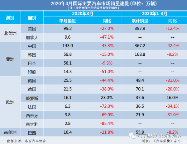 全球汽车市场2020年3月销量速览:世界各国汽车销量大跌,唯有俄罗斯因抢购大幅增长