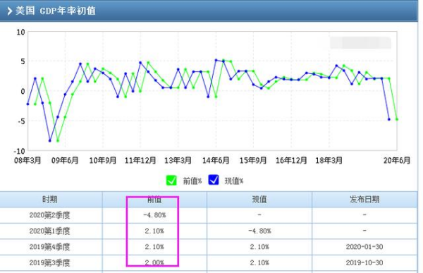 如上图,这是美国GDP走势图,2020年美国第一季度GDP同比负增长4.8%,从美国GDP走势图来看,这是创了2008年以来GDP再度出现负增长,根据市场预期美国二季度GDP会同比负增长进入两位数,二季度才是美国GDP衰退的高峰期。