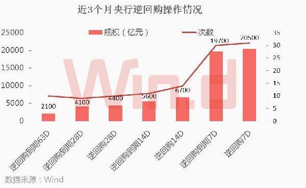 Wind数据显示,3月22日以来,央行共进行了52次逆回购操作,分别是7天、14天和28天,合计投放资金3.03万亿元;而同时间段到期的数量更多,合计达59次,回笼资金3.09万亿,净回笼资金600亿元。逆回购作为央行最频繁的公开市场操作,近3月份整体保持平稳,略微收紧。