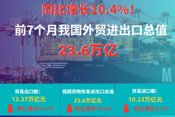 今年前7个月我国外贸进出口总值同比增长10.4% ,这说明了什么?