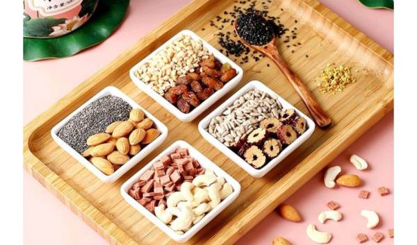 这款奇亚籽坚果藕粉羹中除新鲜细腻的藕粉之外,还特别加入红枣干、葵花籽巴旦木等多种坚果仁以及扛饿黑科技奇亚籽,多种食材搭配在一起,口感更加独特丰富,营养摄取的也更为均衡。