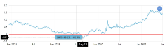 首先,近期在美国CPI同比冲高至5%的情况下,十年期美债收益率从此前接近1.7%的高位快速回落至6月10日的1.45%,6月11日小幅反弹至1.47%,仍处于较低位置。 所以说,对于当前的美国经济来说,它整体的通货膨胀率依然处于一个比较高的位置之上,这也是当前美联储在持续不断加息的重要原因。