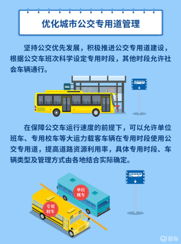 在允许部分社会车辆使用方面,在保障公交车运行速度的前提下,鼓励地方结合实际允许单位班车、专用校车等大运力车辆,在公交专用道专用时段通行。