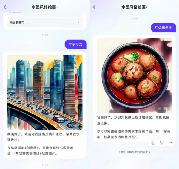 另外画作是不支持通过连续对话进行调整的,只能输入完整描述进行重新绘画。