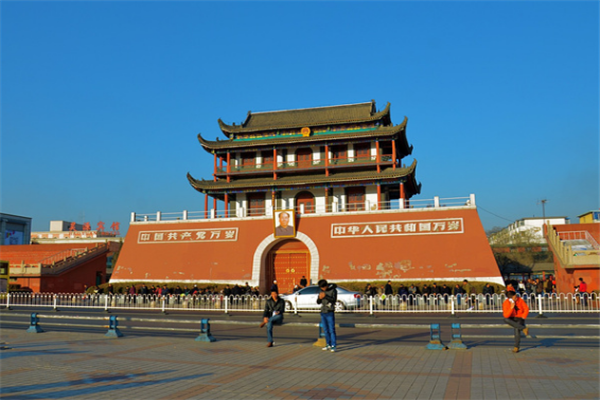 银川老城区的南门,是银川古城六座古城楼中,保存下来的惟一的最完整的城门楼,当地人习惯称为南门楼。如今看到的南门,是1917年重建的,50年代以来经过多次整修,拆除了南门楼东西两侧的城墙,开辟了南门广场;又在门楼两侧修筑观礼台,南北种植了不少的花草树木。
