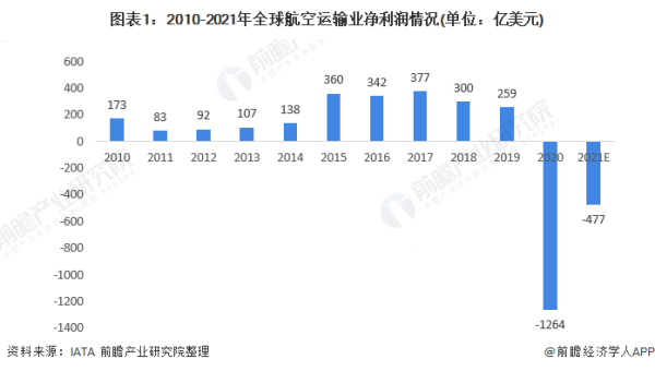 根据国际航空运输协会(IATA)数据,2018年全球航空运输业(客运+货运)净利润为300亿美元,燃油价格上涨和世界贸易严重疲软致使航空商业环境不断恶化,2019年全球航空运输业净利润达到259亿美元,这是全球航空运输业连续第十年盈利。2020年,受疫情影响,全球航空客运基本停滞,全球航空运输业净亏损达1264亿美元。随着疫情逐渐好转,IATA预计2021年全球航空运输业将亏损477亿美元,亏损幅度虽有所收窄但仍难以恢复盈利。