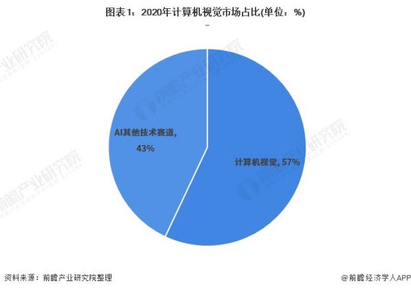 得益于深度学习算法的成熟应用,侧重于感知智能的图像分类技术在工业界逐步实现商用价值,助力金融、安防、互联网交通、医疗、工业、政务等领域智能升级。2020年我国计算机视觉产品的市场规模占整个人工智能行业的57%。