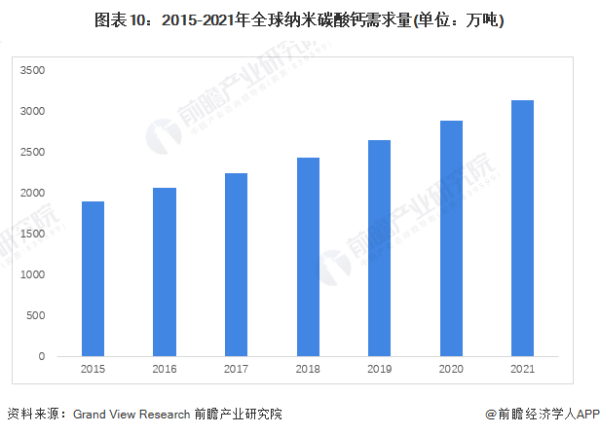 View Research预测的趋势,2021年全球纳米碳酸钙需求量约为3134万吨。