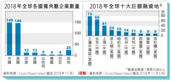 独角兽指的是市值达到十亿美元,没有上市的企业。从一八年的数据看来,整个世界的独角兽企业都聚集在中、美两个国家。剩下国家的独角兽企业,加起来都不到中国的一半。那么这个数据显示了什么呢?在最近十年来,中、美两个国家的新的经济增长点不断出现。相反欧洲和日本的整个社会死气沉沉,就是我们平时讲的「吃老本」。