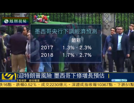 美国是墨西哥的重要贸易伙伴,但随着特朗普上任美国总统,两国贸易流动也出现变化,墨西哥央行在周三发表的季度通胀报告中,便将今年的经济增长预测下修至百分之1.3到百分之2.3,而明年的经济增长预测,也下修到百分之1.7到百分之2.7。