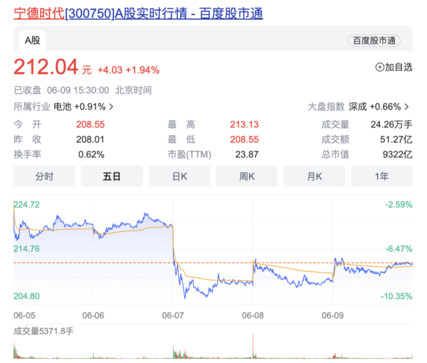 6月8日消息,摩根士丹利近期发布一份研报,将全球动力电池龙头企业宁德时代的评级从“平配”下调至“低配”。消息传出后立即引发市场震动,宁德时代股价7日盘交易一度大跌逾6%,总市值甚至一度跌破9000亿元。