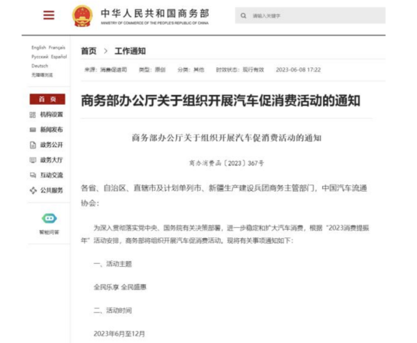 此外,通知强调,要强化购车优惠政策支持,加强活动经费、场地等保障,协调推动地方、企业等出台支持汽车消费的针对性政策举措,充分发挥地方财政资金作用,鼓励金融机构出台汽车信贷金融支持措施。