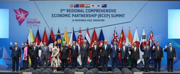 2020年11月15日,第四次区域全面经济伙伴关系协定(RCEP)领导人会议15日以视频方式举行,会后东盟10国和中国、日本、韩国、澳大利亚、新西兰共15个亚太国家正式签署了《区域全面经济伙伴关系协定》(Regional Comprehensive Economic Partnership,RCEP)。
