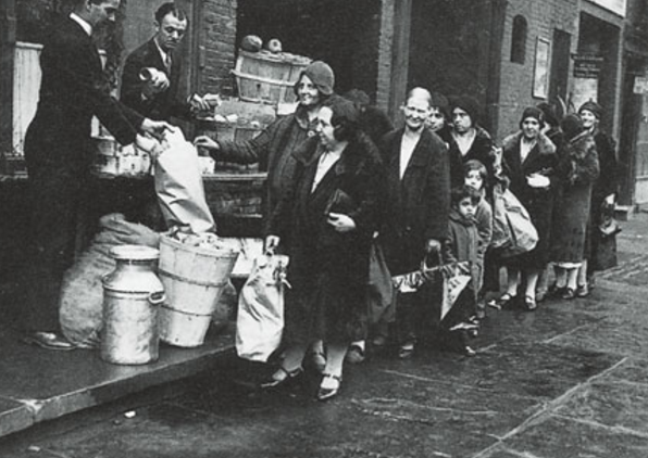 第一次大规模的经济危机开始于1825年,首先发作于第一次工业革命的起始国英国,1830年代蔓延到整个欧洲,到1840年代酿成灾难,整个欧洲的产业规模缩减了三分之二。