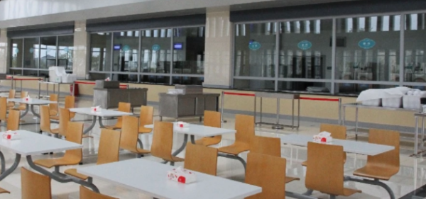 食堂的内部设施主要是桌、椅、收款处和厨房摊位。一般的食堂也提供风扇或者空调。