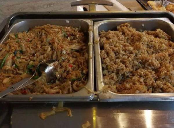 食堂给我们的选择特别多,还有炒面炒饭,为那些不爱吃米饭的人准备的。老板对员工真的很贴心,连这点都想到了,而且厨师放的食材很足,里面还有很多肉。