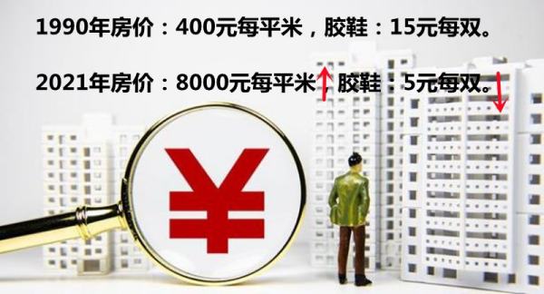 2021年房价:8000元每平米,胶鞋:5元每双。