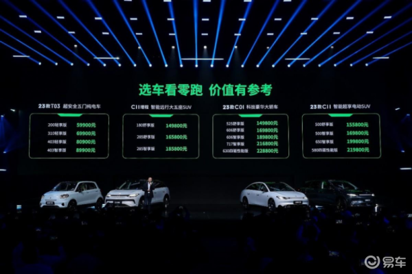 到了3月的第一天,零跑同样是借着推出零跑C11增程版的时机,调整了全系产品的价格。发布会现场大屏幕上打出的“选车看零跑,价值有参考”,简单而又直白。如果说“重新定义15-20万选车标准”这样的说法还太文绉绉,那么朱江明干脆就更明确的表示了:“零跑追求的不只是油电同价,而是要真正做到电车比油车的购买价格更低。”