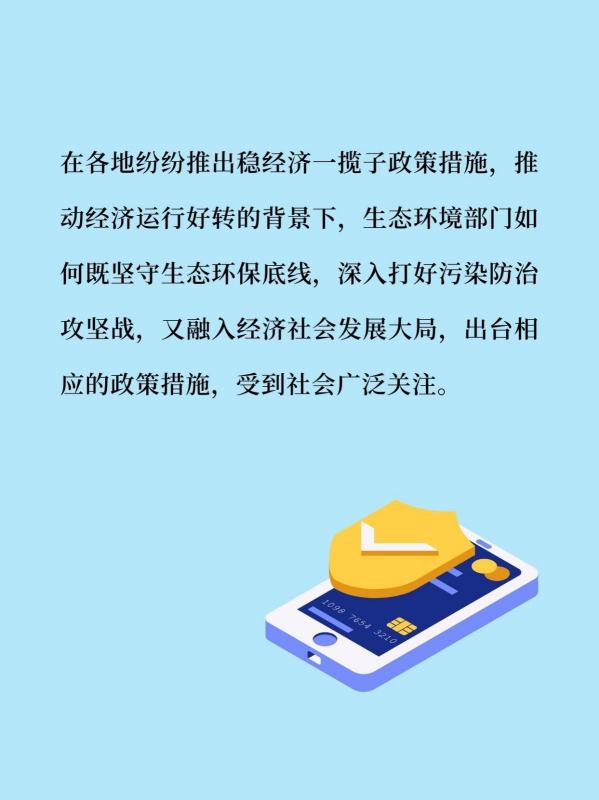 在各地纷纷推出稳经济一揽子政策措施,推动经济运行好转的背景下,生态环境部门如何既坚守生态环保底线,深入打好污染防治攻坚战,又融入经济社会发展大局,出台相应的政策措施,受到社会广泛关注。