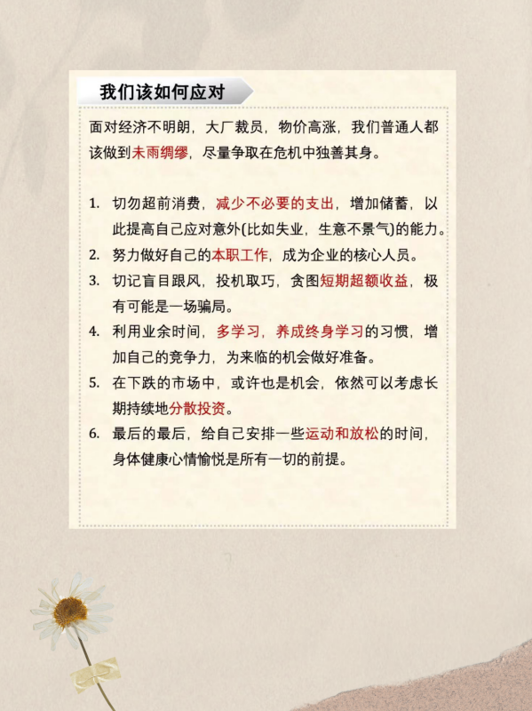 面对经济不明朗,大厂裁员,物价高涨,我们普通人都该做到未雨绸缪,尽量争取在危机中独善其身。