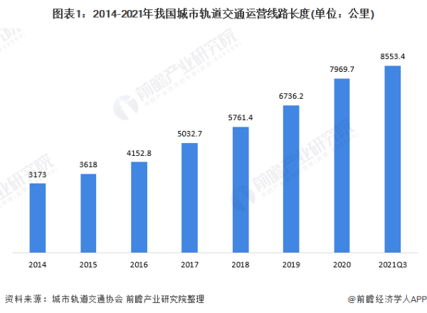 给根据城市轨道交通协会数据,2021年,我国城轨交通运营线路长度为7969.7公里,其中地铁线路长度6280.8公里。截至2021年9月30日,我国城轨交通运行线路长度增长至8553.4公里。
