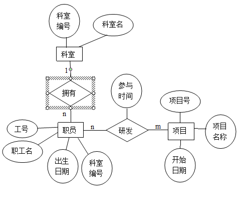 研发(工号,项目号,参与时间),主键是(工号,项目号),外键是工号,项目号。因为工号,项目号不是研发的主键,研发的主键是(工号,项目号),研发是由两者共同决定的,那么外键就是工号,项目号。
