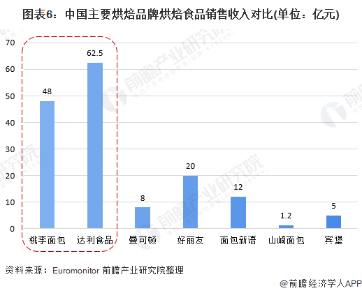 外资品牌的进入唤醒了国内烘焙市场,国内一批厂商品牌快速崛起,并且借助本土化的优势,成为市场的主导力量。据Euromonitor数据,2018年曼可顿、好丽友、面包新语、山崎面包、宾堡在中国地区烘焙食品营业收入分别约为8亿、20亿、12亿、1.2亿、5亿。而本土品牌桃李面包、达利食品2018年烘焙食品的收入已分别达到48亿元、62.5亿元,市场份额远超外资品牌。