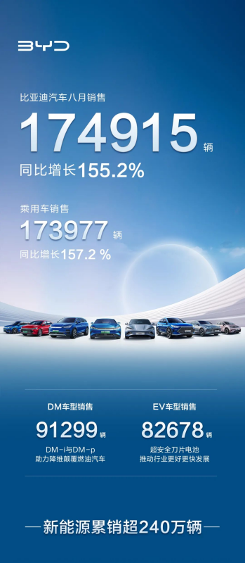 2022年8月比亚迪汽车销量17.49万辆,这一数据说明了什么?