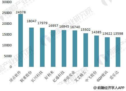 同等营收规模下,明星们与上市公司的赚钱能力相比又如何?对此,根据上述前十明星的收入情况,前瞻产业研究院选取了10家同等规模的上市公司,这10家上市公司分别是顶点软件、鞍重股份、长川科技、好利来、亿通科技、华资实业、艾艾精工、中飞股份、GQY视讯、爱乐达,2017年营收规模如下图所示。