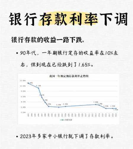 存款太多会导致利率下调,上世纪90年代,那个时候银行一年期的存款利率都在10%左右,现在只有1.5%样子了,而且长远来看,利率还将继续往下走。