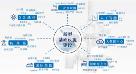 业内人士和媒体机构将新基建涉及的主要领域归纳为7个方面:5G基站、特高压、工业互联网、城际高速铁路和城际轨道交通、新能源车充电桩、人工智能、大数据中心。