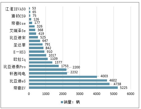 新能源乘用车车企销量排行TOP10(单位:辆)