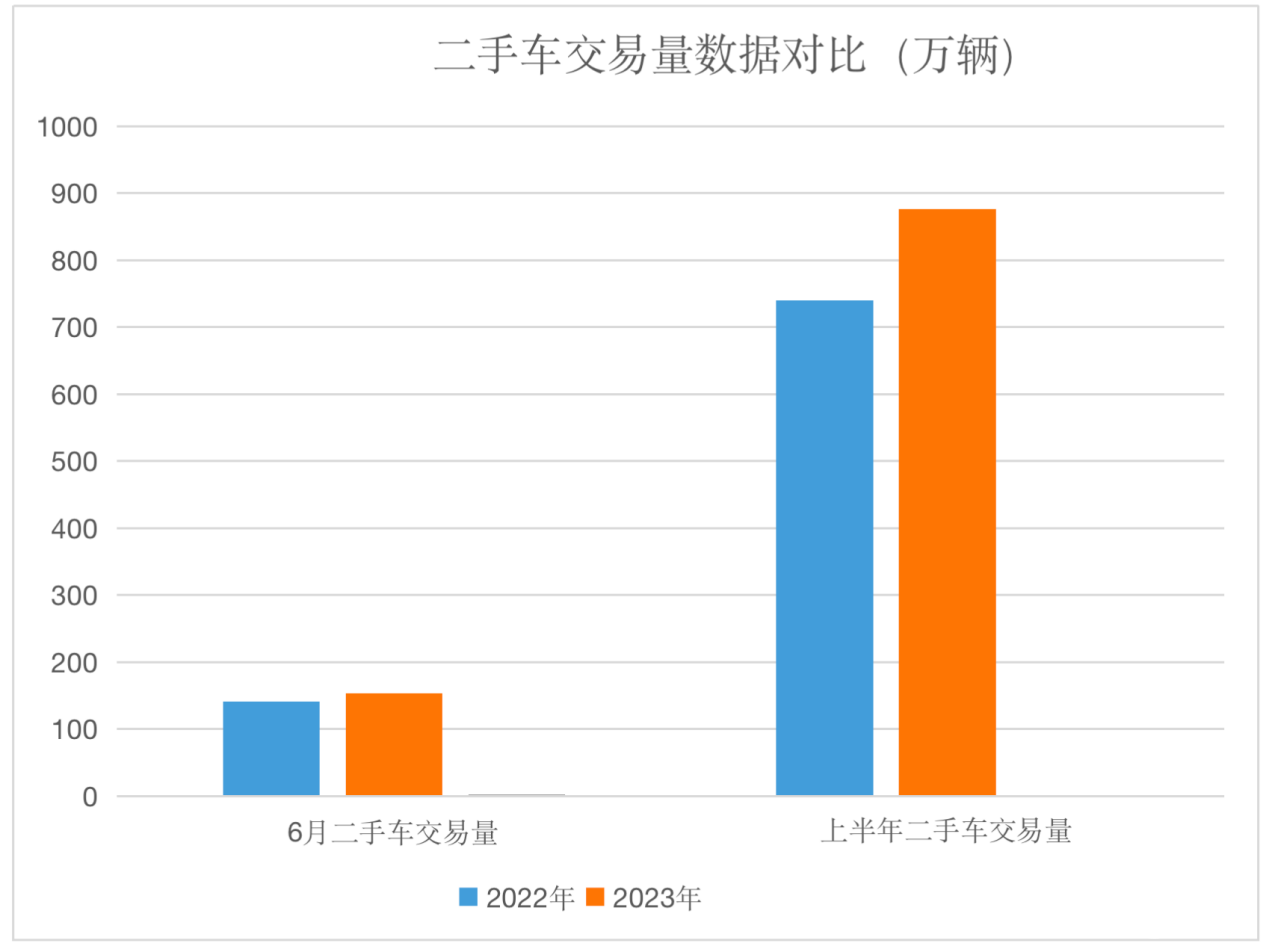 从中国汽车流通协会发布的数据来看,2023年6月中国市场二手车交易量为153.34万辆,环比增长2.45%,同比增长8.24%,交易金额为973.47亿元;而今年上半年,中国汽车市场二手车累计交易量876.86万辆,同比增长15.60%,与同期相比增加了118.35万辆,累计交易金额为5517.26亿元。